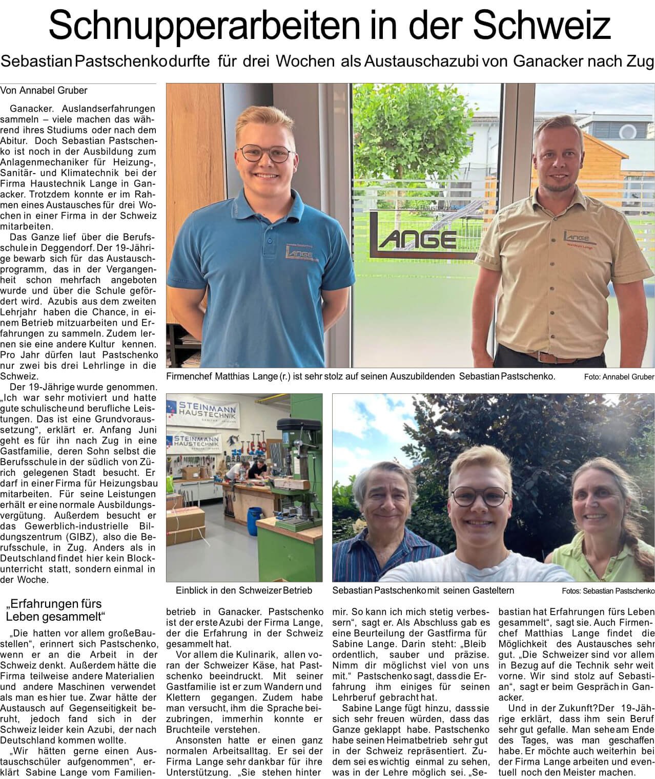 Unser Azubi schnuppert in der Schweiz